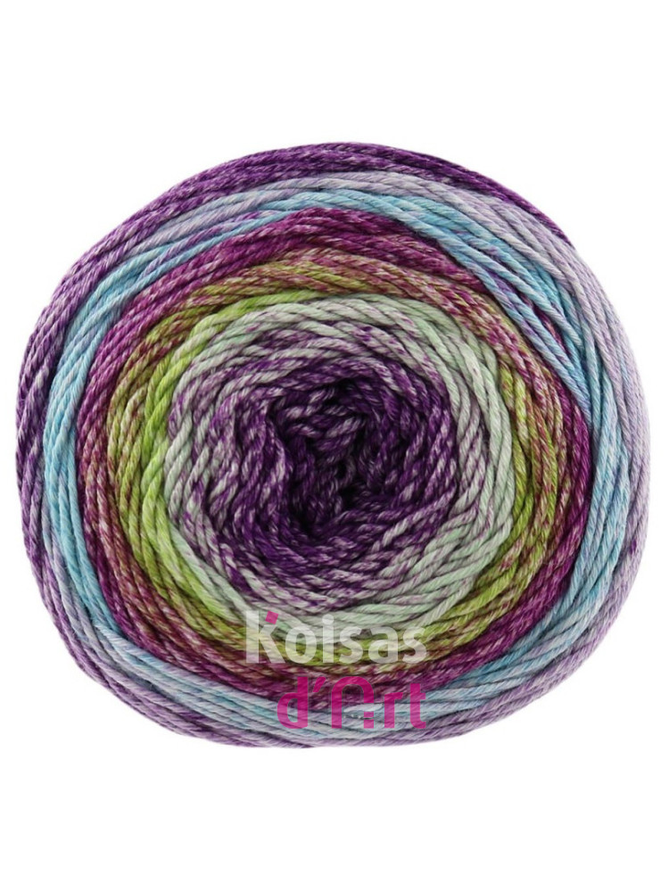 Um fio torcido simples e linear, ostentando maciez única e oferecido em 12 variantes impressas que farão apaixonar-se por ele. Uma corrente de tons quentes, picantes e ensolarados dará vida a peças de tricô e crochê frescas e de verão..