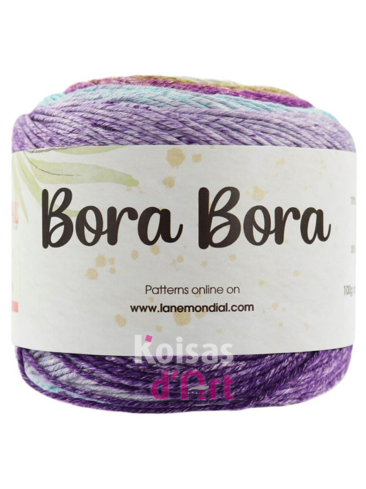 Mondial Bora Bora é um fio sustentável feito de 70% algodão e 30% de Bambu, com um matizado suave e listado, cria peças com aparência muito bonitas, duráveis e frescas, devido ao Bambu empregue na sua constituição.