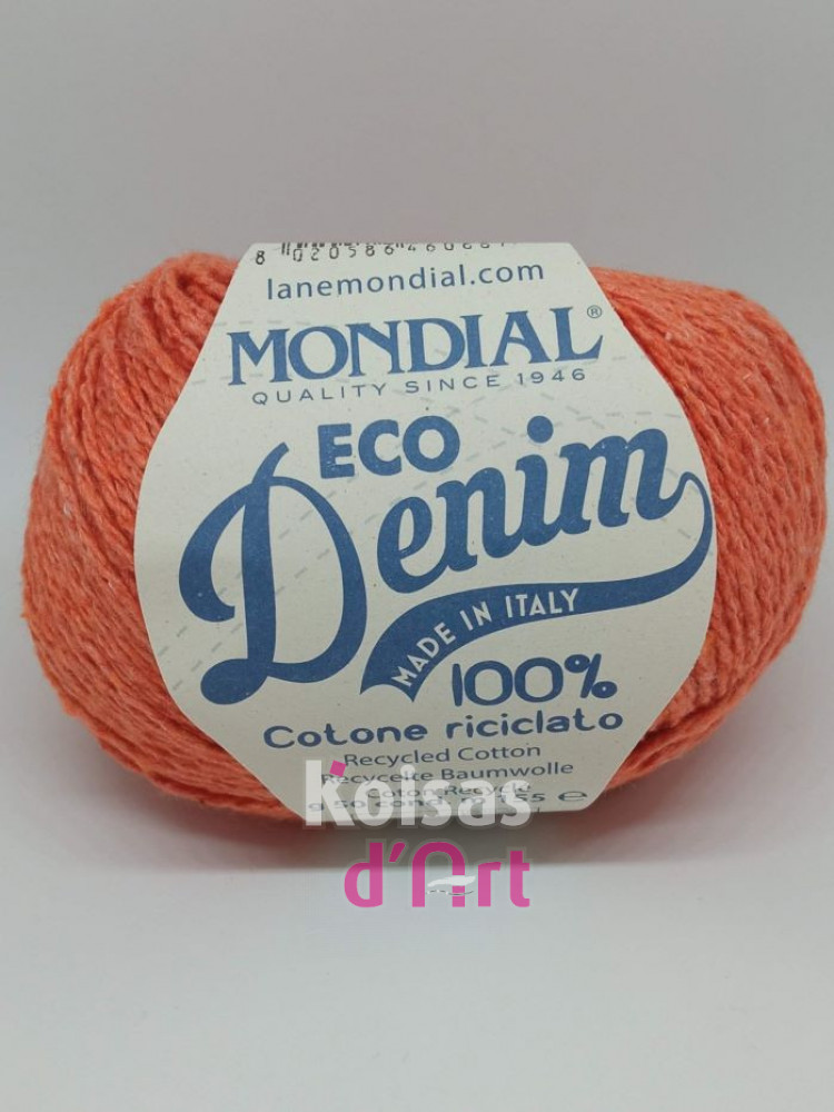 Eco Denim é um fio reciclado a partir de 100% algodão, dado ser um fio reciclado tem cores que não são de um tom sólido mas sim de uma mescla muito suave do tom principal com ligeiras imperfeições dos fios reciclados.