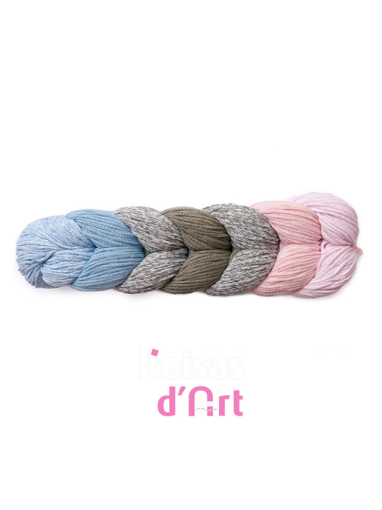 Treccia é um fio bem grosso feito a partir de 100% algodão reciclado, com formato inovador. O fio entrançado e as suas cores entrelaçadas conferem-lhes uma forma totalmente original e diferente.