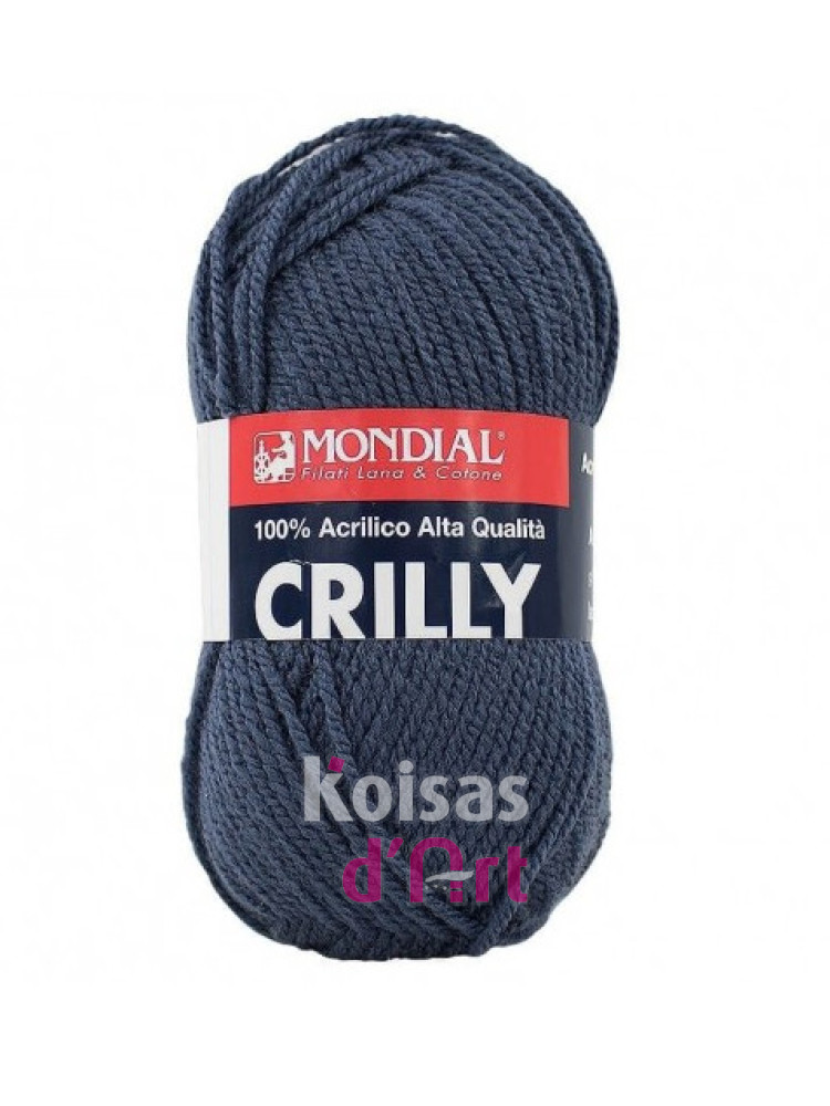 Crilly da marca Mondial, é uma fibra acrílica Dralon da Bayer. É um acrílico de qualidade superior, com toque macio e que não forma borboto. Adequada para recém-nascidos, ou maiorzinhos e também indicada para a confeção de mantas e cobertores ou agasalhos.