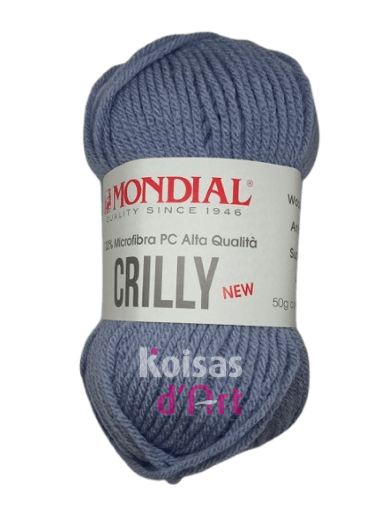Crilly da marca Mondial, é uma fibra acrílica Dralon da Bayer. É um acrílico de qualidade superior, com toque macio e que não forma borboto. Adequada para recém-nascidos, ou maiorzinhos e também indicada para a confeção de mantas e cobertores ou agasalhos.