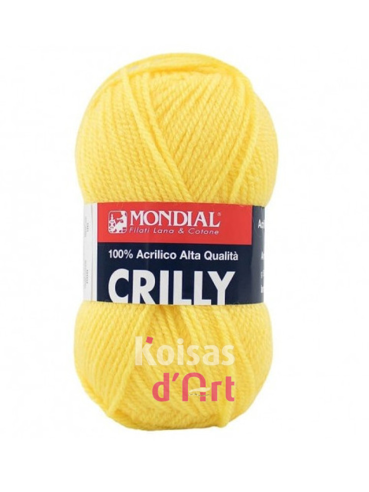 Crilly da marca Mondial, é uma fibra acrílica Dralon da Bayer. É um acrílico de qualidade superior, com toque macio e que não forma borboto. Adequada para recém-nascidos, ou maiorzinhos e também indicada para a confeção de mantas e cobertores ou agasalhos.