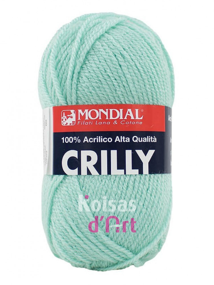 Crilly da marca Mondial, é uma fibra acrílica Dralon da Bayer. É um acrílico de qualidade superior, com toque macio e que não forma borboto. Adequada para recém-nascidos, ou maiorzinhos e também indicada para a confeção de mantas e cobertores ou agasalhos.