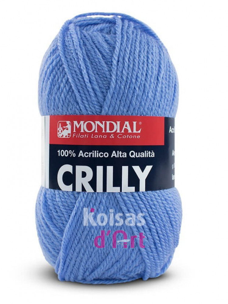 Crilly da marca Mondial, é uma fibra acrílica Dralon da Bayer. É um acrílico de qualidade superior, com toque macio e que não forma borboto. Adequada para recém-nascidos, ou maiorzinhos e também indicada para a confeção de mantas e cobertores ou agasalhos.