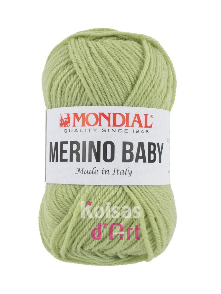 Merino Baby da marca Mondial, é uma mistura de lã fiada numa mistura íntima com uma lã finíssima e acrílico, de forma a dar ao fio um toque muito macio. Adequada para recém-nascidos, ou maiorzinhos e também indicada para a confeção de mantas e cobertores ou agasalhos. A lã utilizada para este fio é tratada com Superwash, para garantir a lavabilidade na máquina, enquanto o tingimento é feito com cores sólidas e reativas.