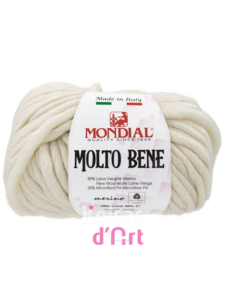 Molto Bene é uma clássica mecha volumosa e macia, fácil e rápida de trabalhar, que é indicada para a realização de casacos e principalmente acessórios tanto para serem usados na decoração da casa como para cachecol ou gorros bonitos e práticos.